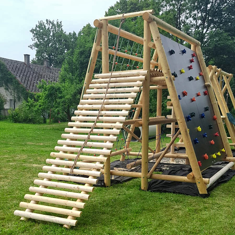 Nejdůležitějším artiklem v naší nabídce jsou houpačky, skluzavky, lezecké stěny a celá dětská hřiště. Zakládáme si na precizním a odolném provedení z masivních frézovaných kuláčů a masivního dřeva.